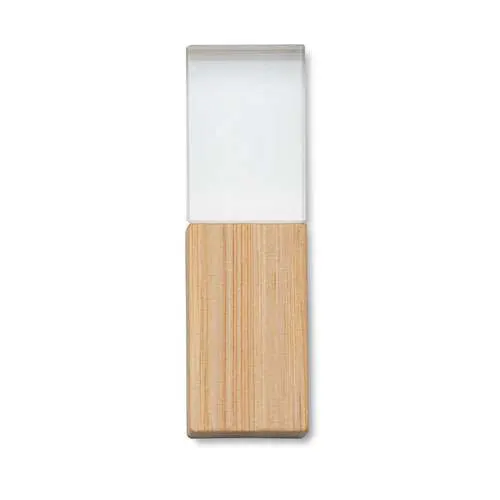 Descrição: Pen drive de cristal com tampa e detalhe em bambu. Capacidades de 4GB e 8GB.