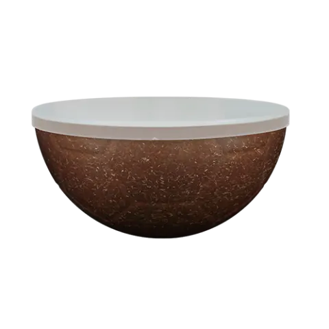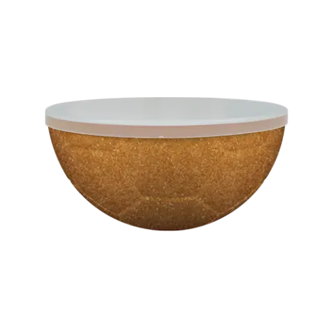 Capacidade 240ml. Petisqueira com tampa em formato de bola de futebol, feito com 50% de fibra de coco ou madeira e 50% de Plástico Premium (PP) atóxico, resistente à micro-ondas e lava-louças. Produto sustentável, feito através do reaproveitamento de resíduo de casca de coco ou de madeira de reflorestamento.