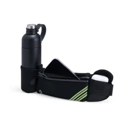 Descrição: Torne suas caminhadas ainda mais práticas com esta pochete funcional! Fabricada em neoprene e resistente à água, ela é perfeita para qualquer aventura. Possui um bolso principal espaçoso, ideal para celulares, com uma divisória interna que protege a tela de riscos e organiza outros itens. Na parte externa, conta com um compartimento exclusivo para garrafinhas de água ou isotônicos e um bolso menor, ideal para chaves, documentos ou pequenos objetos como pastilhas. Leve e discreta, essa pochete ainda oferece saída para fones de ouvido e faixas refletivas, garantindo mais segurança durante corridas noturnas.