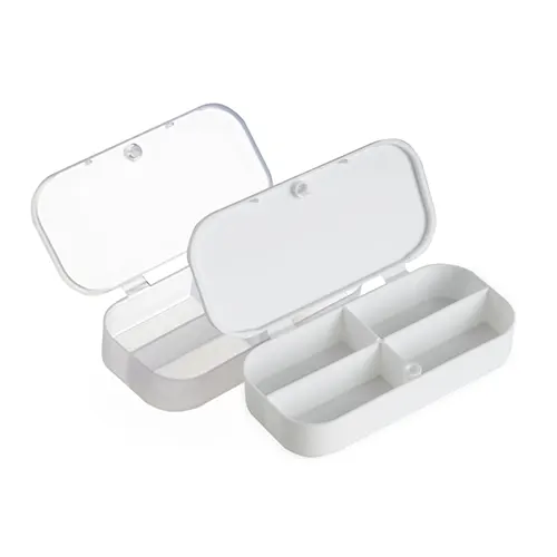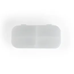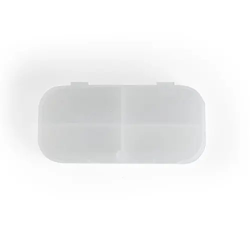 Descrição: Porta comprimidos plástico com quatro divisórias.