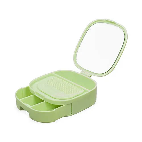 Descrição: Este porta-joias feito em plástico é uma ótima opção para guardar objetos delicados com segurança. O organizador conta com espaço interno com dois compartimentos de tamanhos distintos e uma gaveta com três divisórias. Além disso, possui um espelho na parte interna da tampa, o que destaca sua versatilidade. Acompanha um pente compacto.