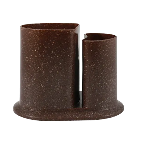 Porta Lápis com duas cavidades com espaço para cartão de visita. Feito com 50% de fibra natural de coco ou madeira e 50% de Plástico Premium (PP), reduzindo a quantidade de plástico e reaproveitando resíduos renováveis. Seu design arredondado é de exclusividade do Grupo BB! Excelente brinde para escritórios e escolas.