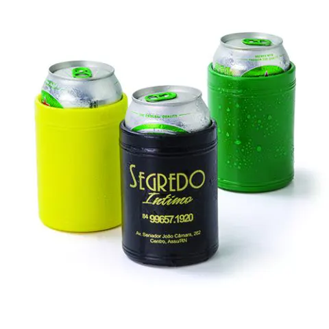 Porta Lata de Cerveja Personalizado. É o brinde personalizado ideal para manter a temperatura da sua latinha gelada por mais tempo. Com capacidade de 350 ml, feito em plástico e revestido por manta acrílica.