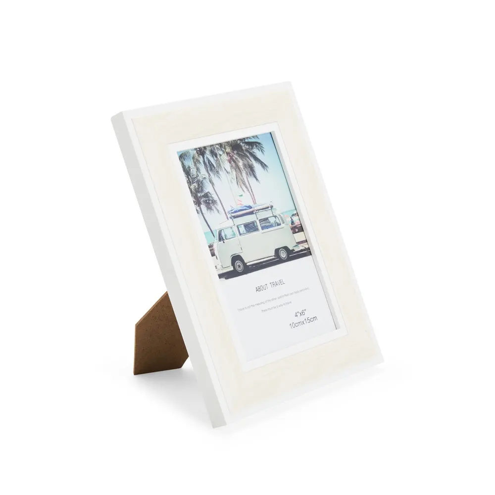 Descrição: Porta-retratos para fotos 10 x 15, pode ser usado na vertical ou na horizontal. Possui moldura em PVC, visor em folha de acetato, fundo em MDF e travas metálicas.