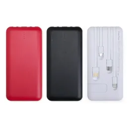 Descrição: Nosso power bank 10.000mAh 4 em 1 é uma solução prática e eficiente para manter os dispositivos sempre carregados, mesmo quando estiver em movimento. Feito em plástico, este carregador portátil é compatível com diversos dispositivos, pois conta com quatro cabos acoplados: Lightning, tipo-C, micro-USB e USB. Além disso, o power bank possui um suporte lateral integrado, feito para manter o celular na horizontal durante o carregamento, permitindo assistir vídeos ou participar de reuniões enquanto o dispositivo carrega. Funcional, nosso carregador é equipado com duas lanternas para situações de emergência. Sua entrada micro-USB 5V=2.1A e saída USB 5V=2.1A, oferece um desempenho eficiente e rápido para o dia a dia.