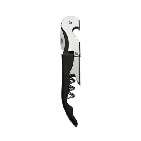 Descrição: Saca-rolhas metálico de 2 estágios com acabamento brilhante. Contém abridor de garrafa, lâmina de corte e saca-rolhas.