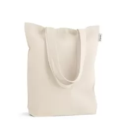 Sacola em algodão (220 g/ m²) composta por 50% algodão e 50% algodão reciclado, com alças de 60cm. 380 x 400 x 100 mm