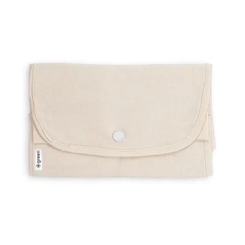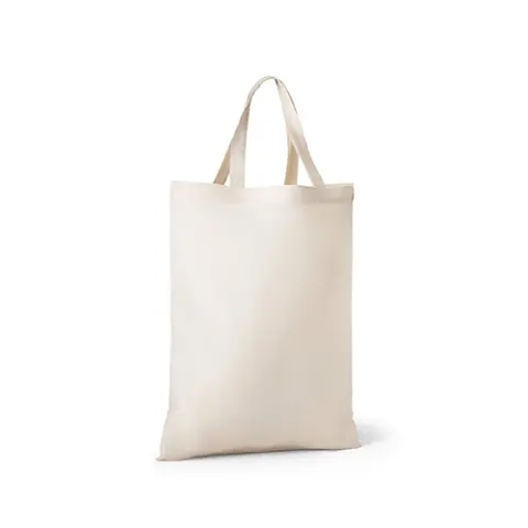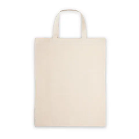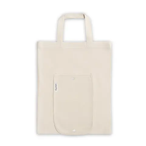 Sacola dobrável em algodão (140 g/m²) composta por 50% algodão e 50% algodão reciclado, com alças de 38 cm. Aberto: 380 x 470 mm | Dobrado: 135 x 205 mm