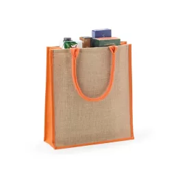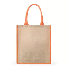 Descrição: Sacola ecológica confeccionada em juta com alças costuradas na parte interna.