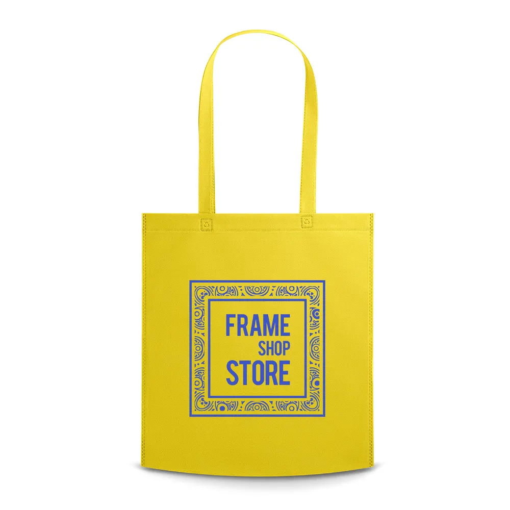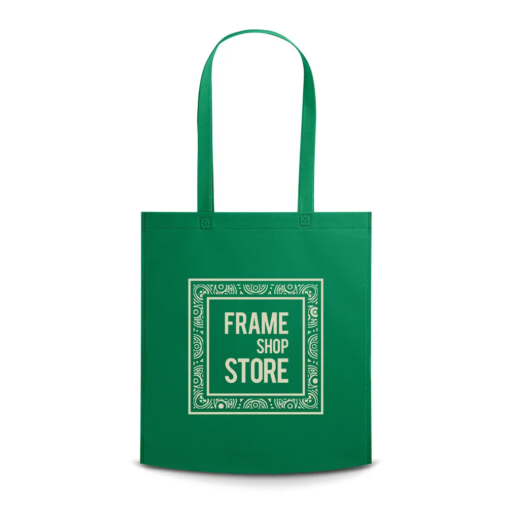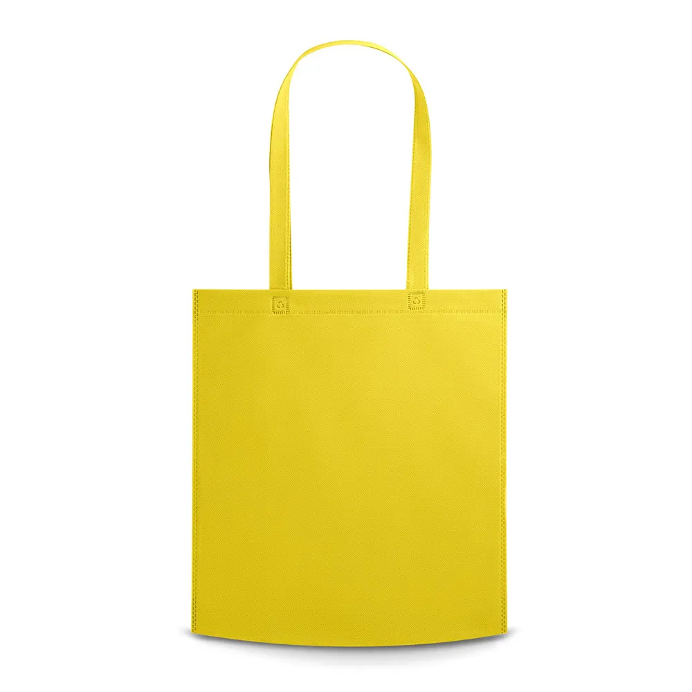 Sacola em non-woven (80 g/m²) termo-selado com alças de 60cm. 370 x 410 x 80 mm