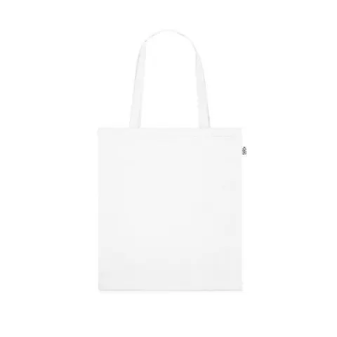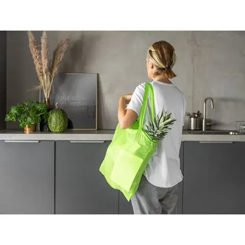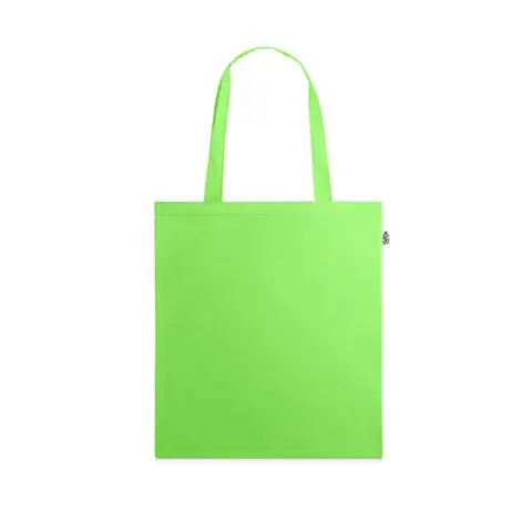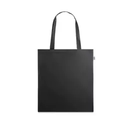 Sacola em rPET 190T. Produzida a partir de plástico reciclado contribuindo para a redução dos resíduos no meio ambiente. Alças de 60 cm. 380 x 420 mm