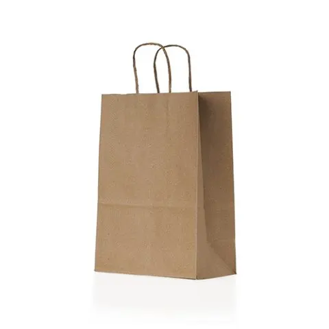 Descrição: Sacola em papel kraft com alça de papel.