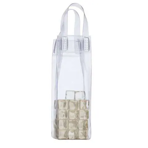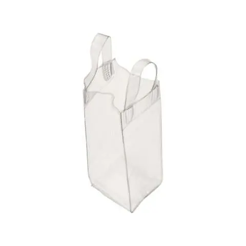 Sacola plástica para gelo com alça. Icebag serve para transportar garrafas exemplo: vinho, champagne, vodka… Basta colocar água e gelo e transportar seu cooler prático.
