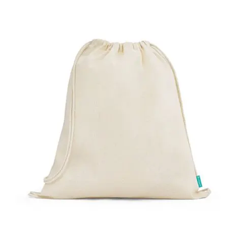 Sacola tipo mochila 100% algodão orgânico (120 g/m²) proveniente de um cultivo sustentável, sem químicos ou pesticidas. 370 x 410 mm