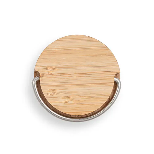 Squeeze em bambu e aço inox, com corpo duplo e isolamento a vácuo. Capacidade até 440 ml. Food grade. Fornecido em caixa presente de papel craft. ø70 x 215 mm