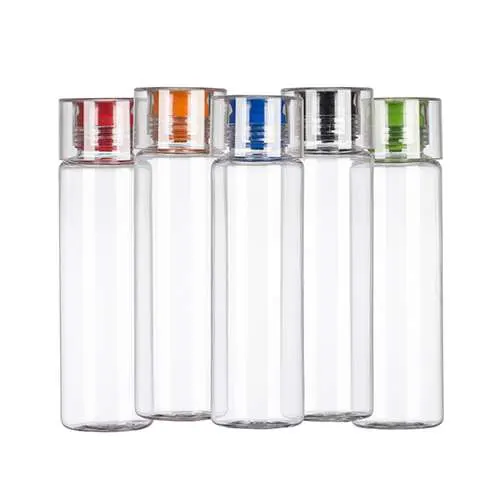 Squeeze Plástico 600ml com tampa rosqueável. Material plástico transparente com tampa, possui bico/tampa interna emborrachada colorida. Ambas rosqueáveis.