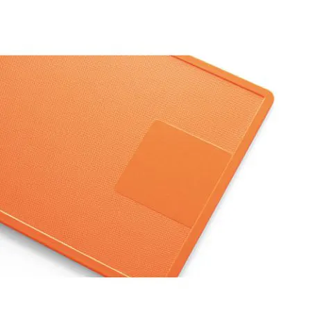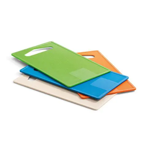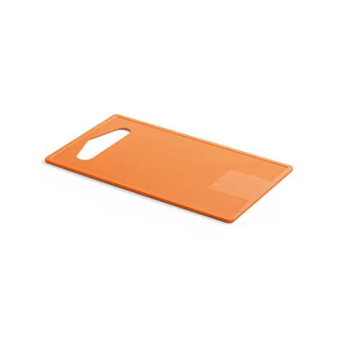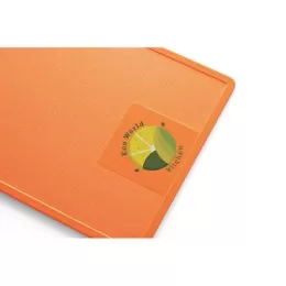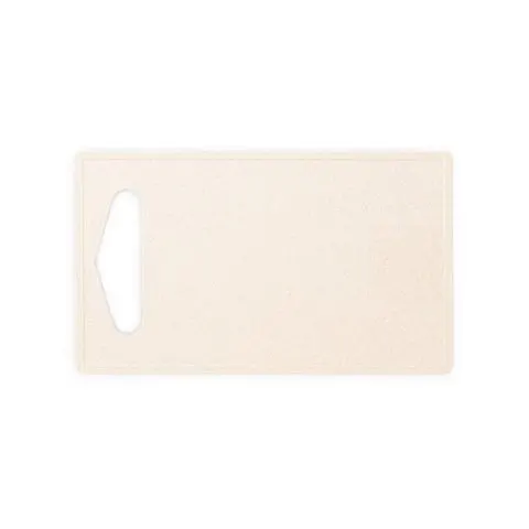 Tábua de corte em fibra de bambu (50%) e PP (50%). Contém um quadrado liso no fundo da tábua, adequado para a personalização. 237 x 140 x 4 mm
