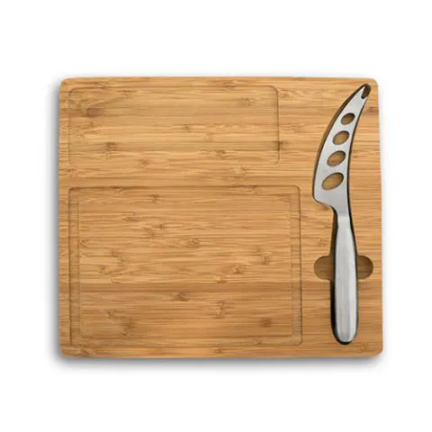 Tábua de queijos em bambu com faca incluída. Fornecida em caixa de papel kraft. 300 x 260 x 15 mm | Caixa: 307 x 267 x 21 mm