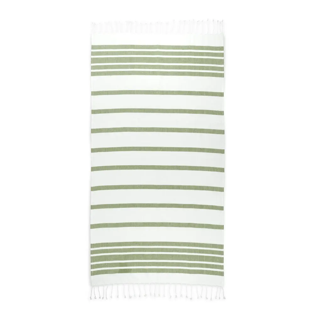 Toalha de praia em algodão 70% reciclado e poliéster 30% reciclado (180 g/m²), com um design minimalista e elegante para os seus dias de praia. 900 x 1700 mm